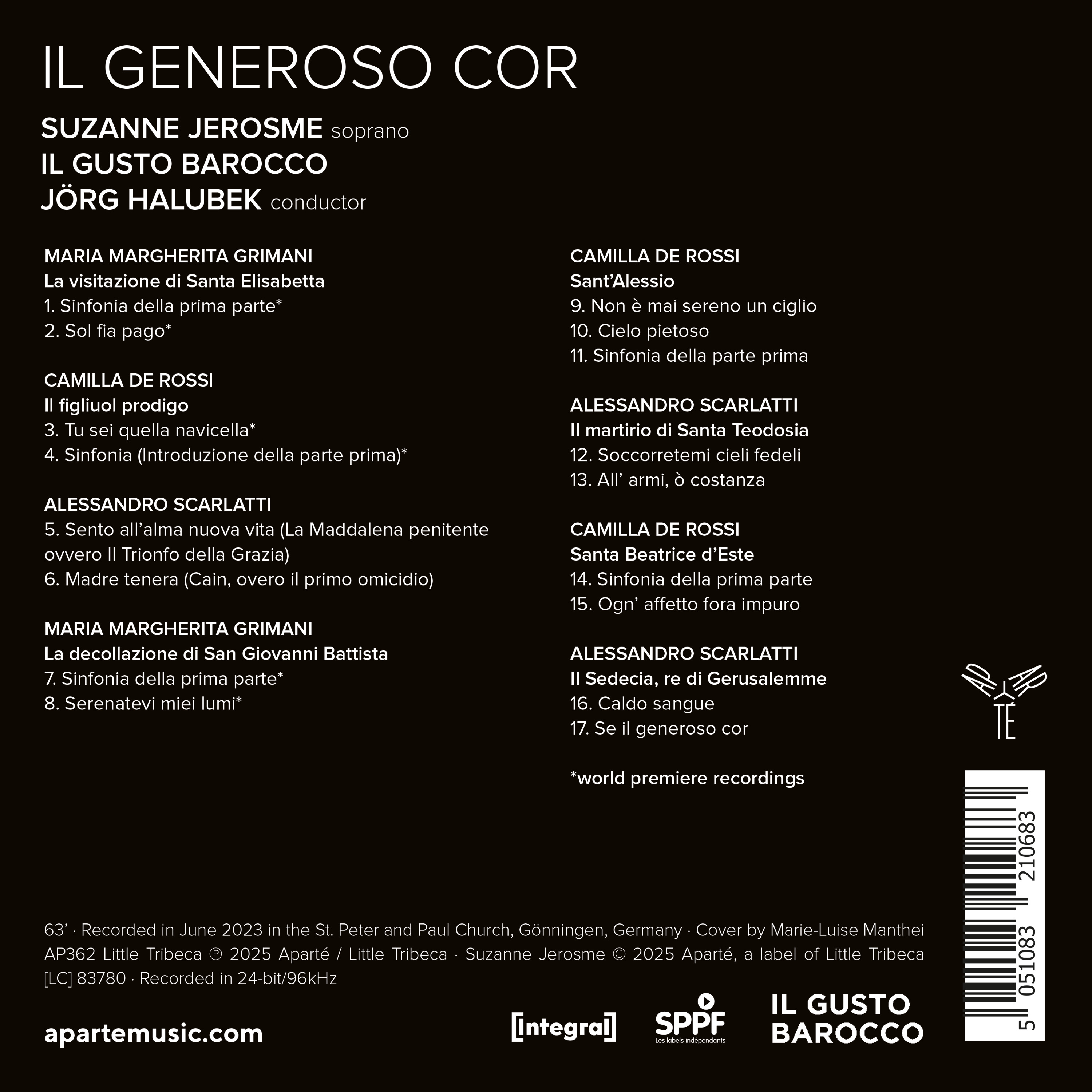 Suzanne Jerosme, Jorg Halubek, and Il Gusto Barocco revive the forgotten oratorios of Camilla de Rossi and Maria Margherita Grimaldi, revealing works of striking beauty worthy of the greatest masters of their time.
